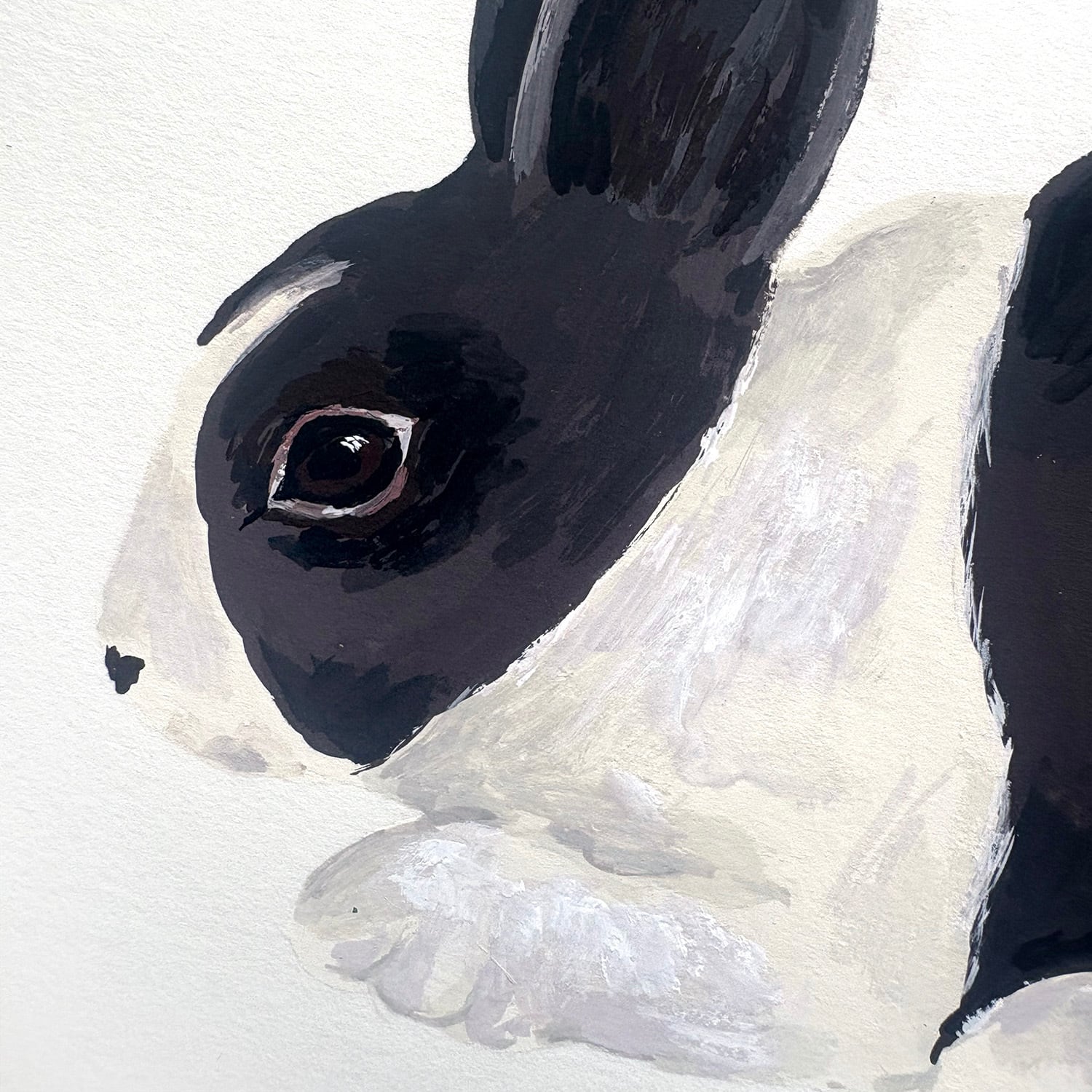 漆黒のひとみとふわふわの毛並みの黒うさぎ。